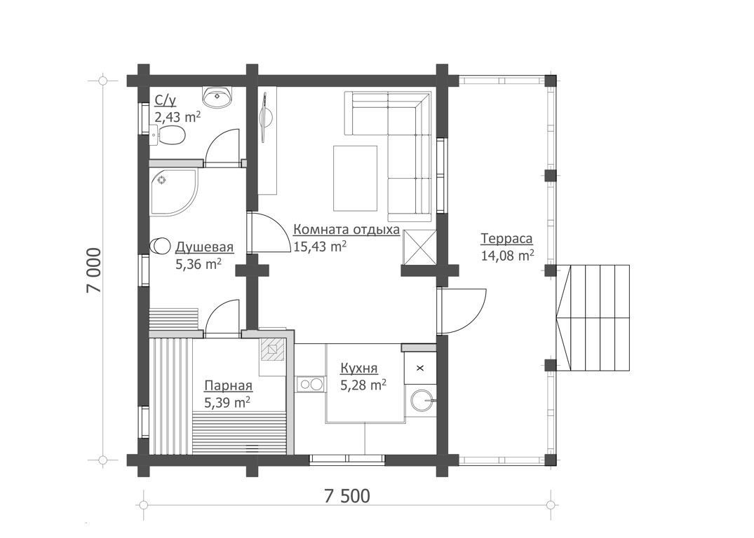 Комплектация "ХОЛОДНЫЙ КОНТУР" Сечение бруса 160*185 мм