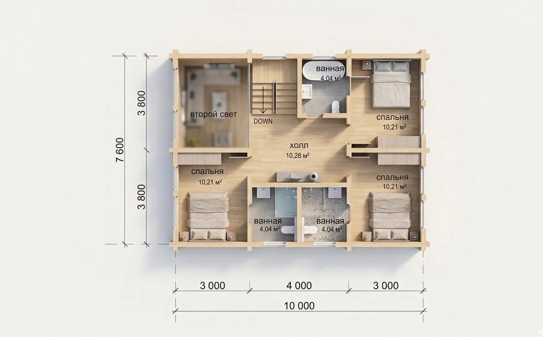 Дом из клееного бруса «Байкал-Тур» — это идеальное решение для бизнеса в сфере гостеприимства и комфортного загородного отдыха. Проект создан на базе популярного дома «Байкал», но адаптирован под туристическое использование: здесь продумано всё для удобного размещения гостей и максимальной функциональности. Проект имеет размеры 10×10.6 м, общей площадью  166 м2 (в том числе, 113 м2 в закрытом контуре  + терраса крытая 21 м2 + терраса открытая 32 м2).