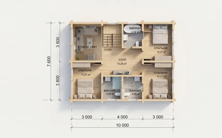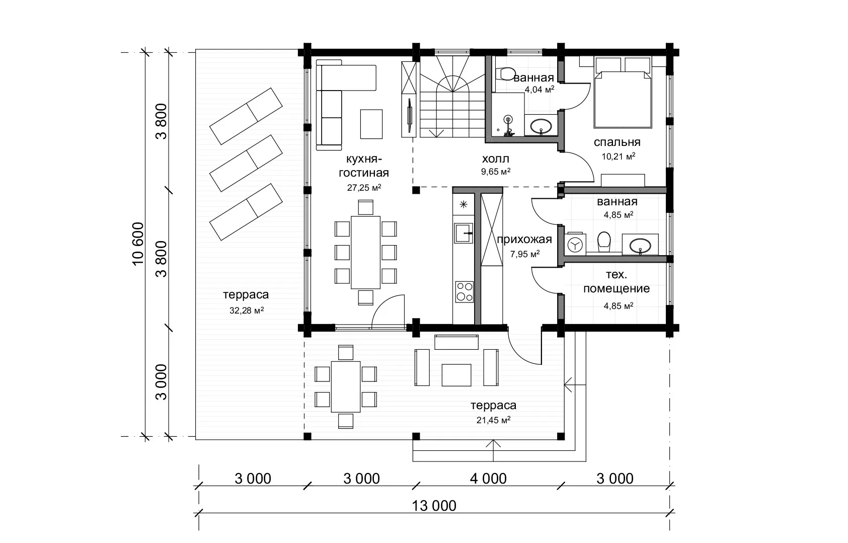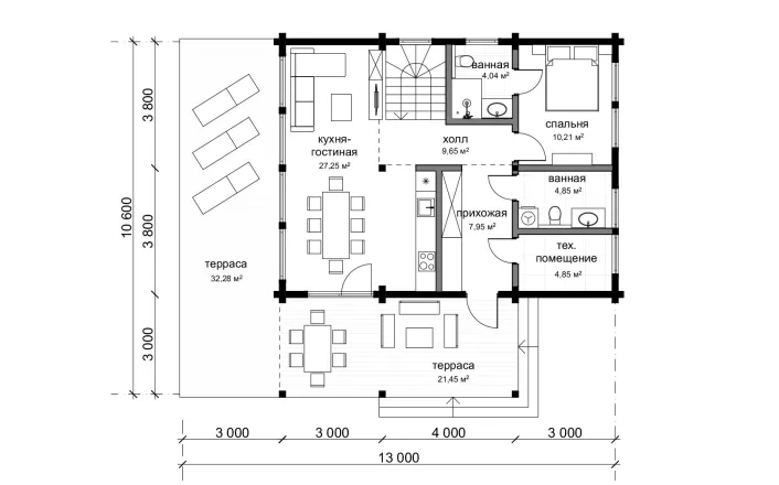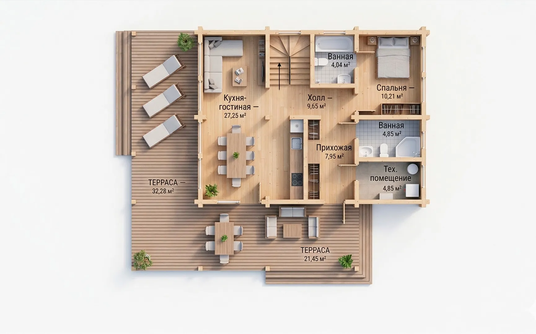 Главное преимущество — четыре полноценные спальни, каждая из которых оборудована собственным санузлом. Это позволяет одновременно и с комфортом разместить до четырёх семей или независимых групп гостей, обеспечивая приватность и высокий уровень сервиса. Просторная кухня-гостиная со вторым светом становится центром притяжения — идеальным местом для общения и отдыха.
