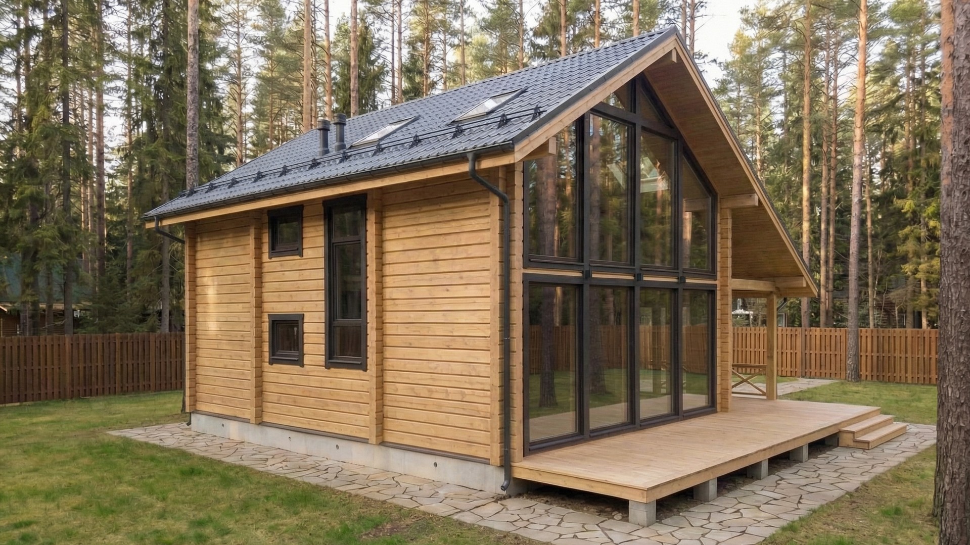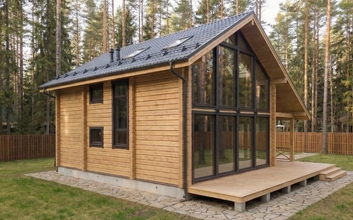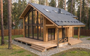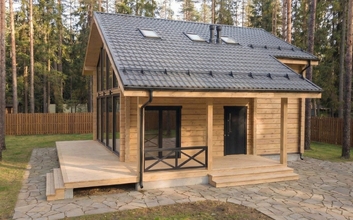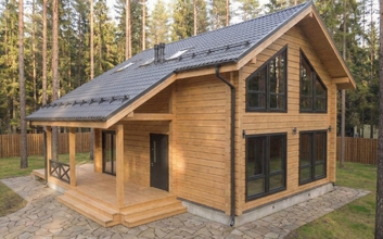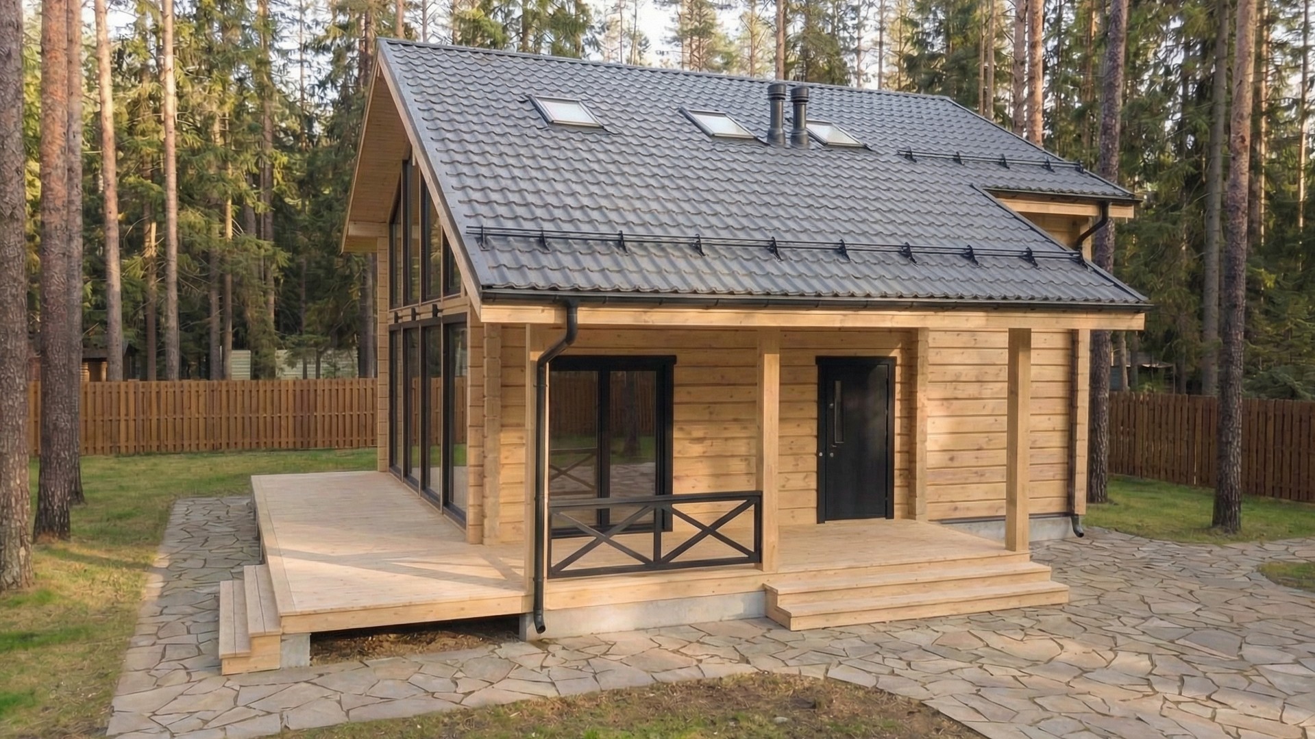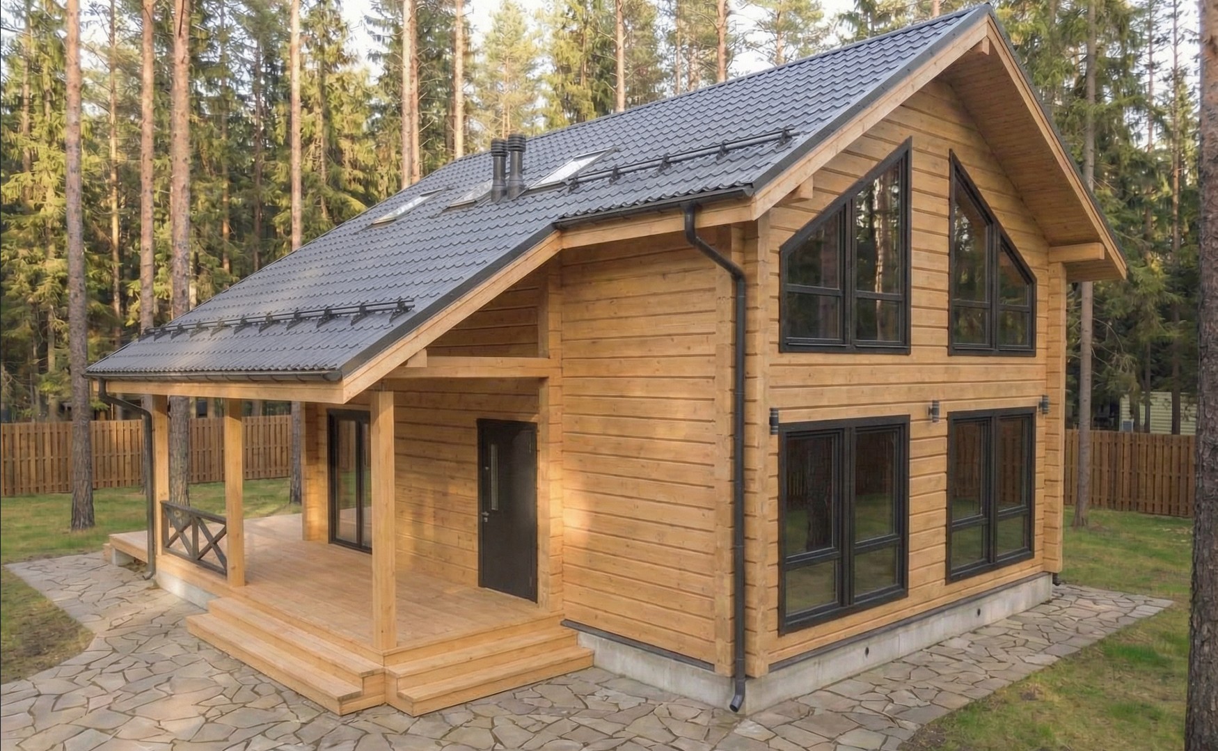 Дополнительным плюсом стала открытая веранда перед домом — уютное пространство для завтраков на свежем воздухе, вечерних посиделок и наслаждения природой. Архитектура из клееного бруса создает теплую, экологичную атмосферу и подчеркивает статус объекта.