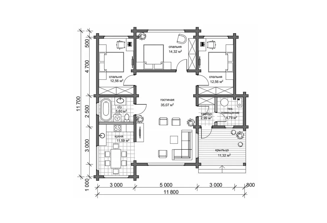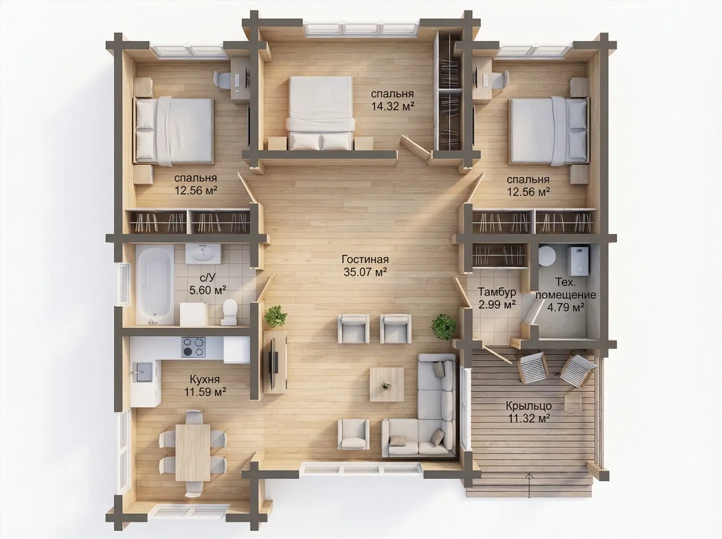 Комплектация "ХОЛОДНЫЙ КОНТУР" Сечение бруса 160х185 мм |