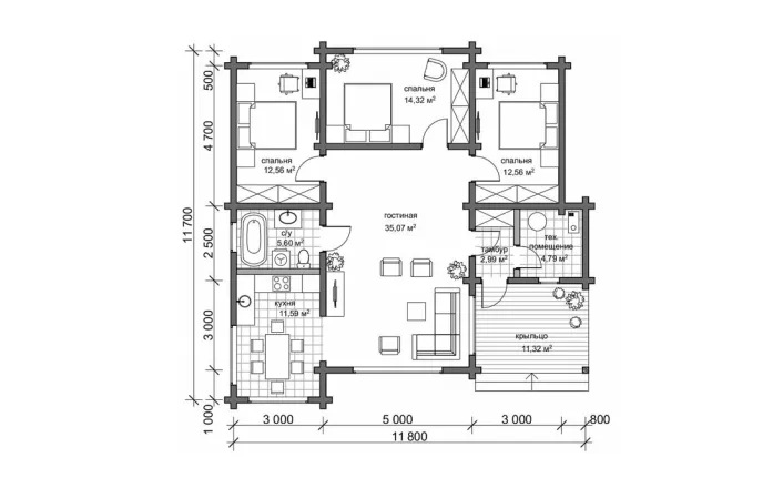 Комплектация "ТЕПЛЫЙ КОНТУР" Сечение бруса 160х185 мм |