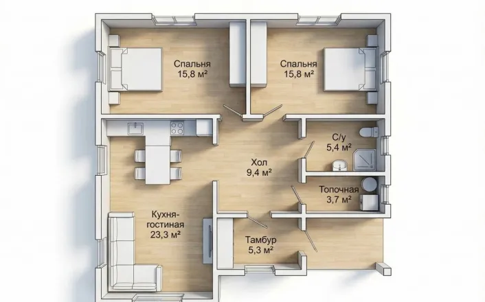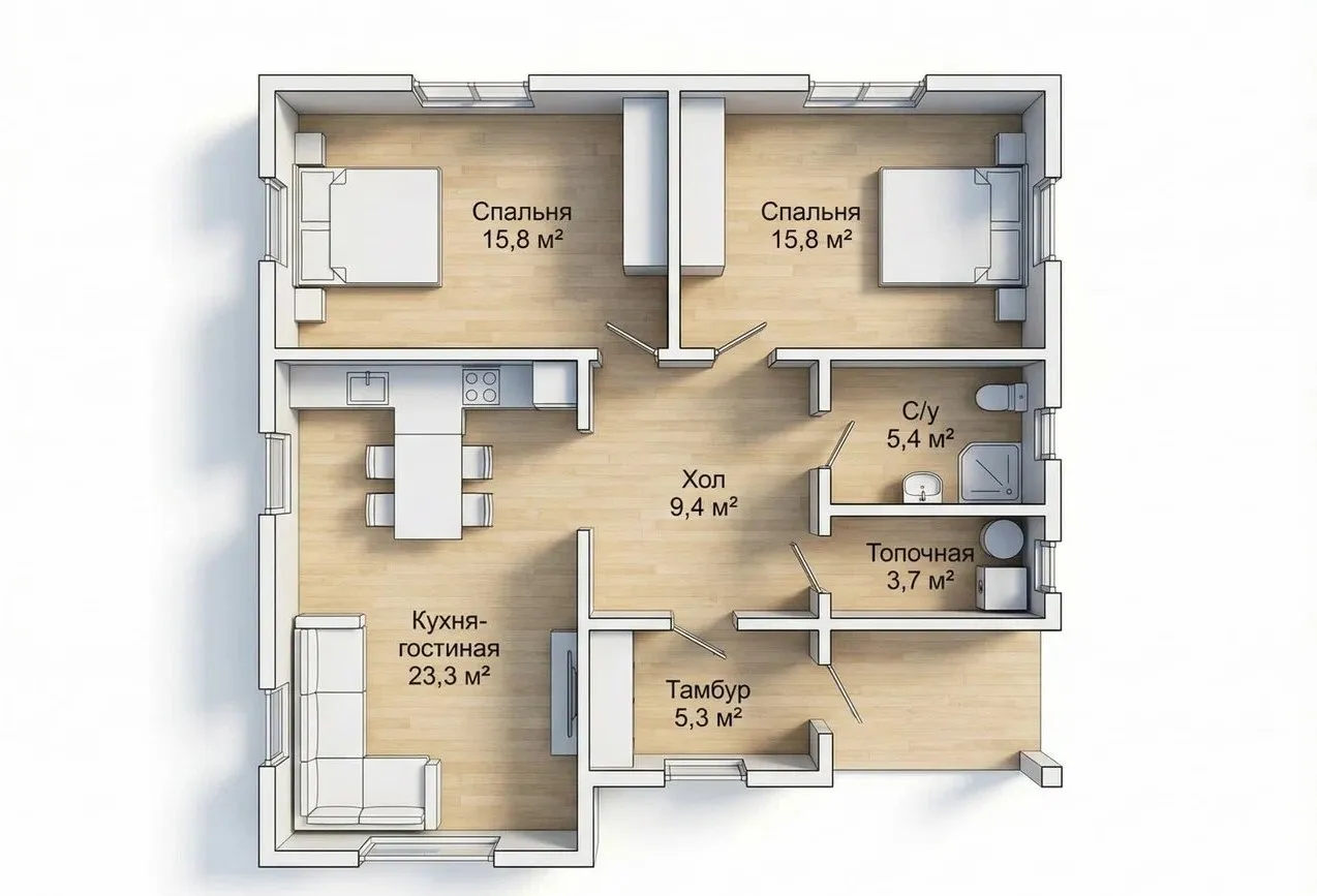 - Черновой пол (двойной слой фанеры 10мм, мокрые зоны – укладка ЦСП)