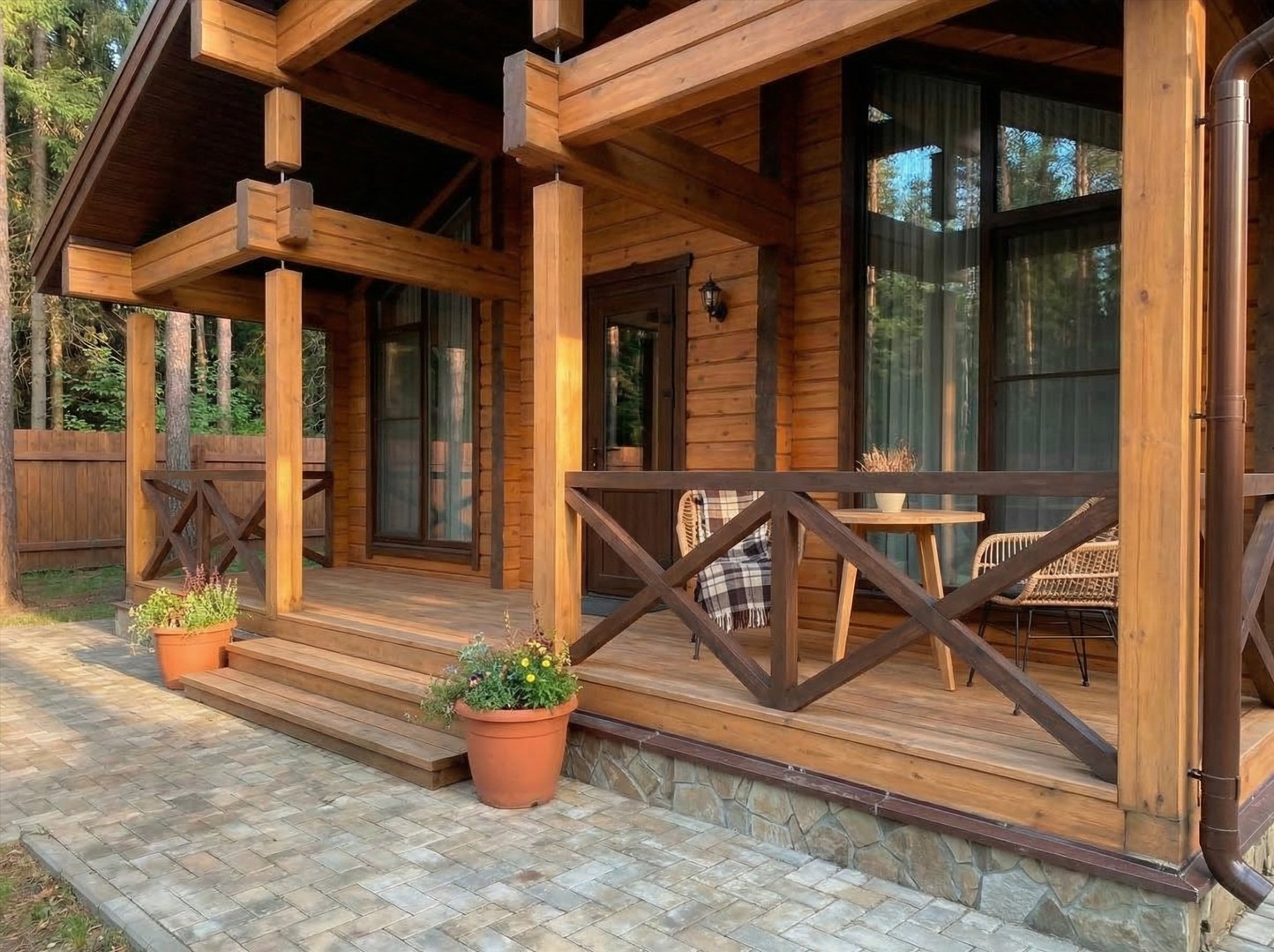 • Отделка пола террасной доской из лиственницы или сосны