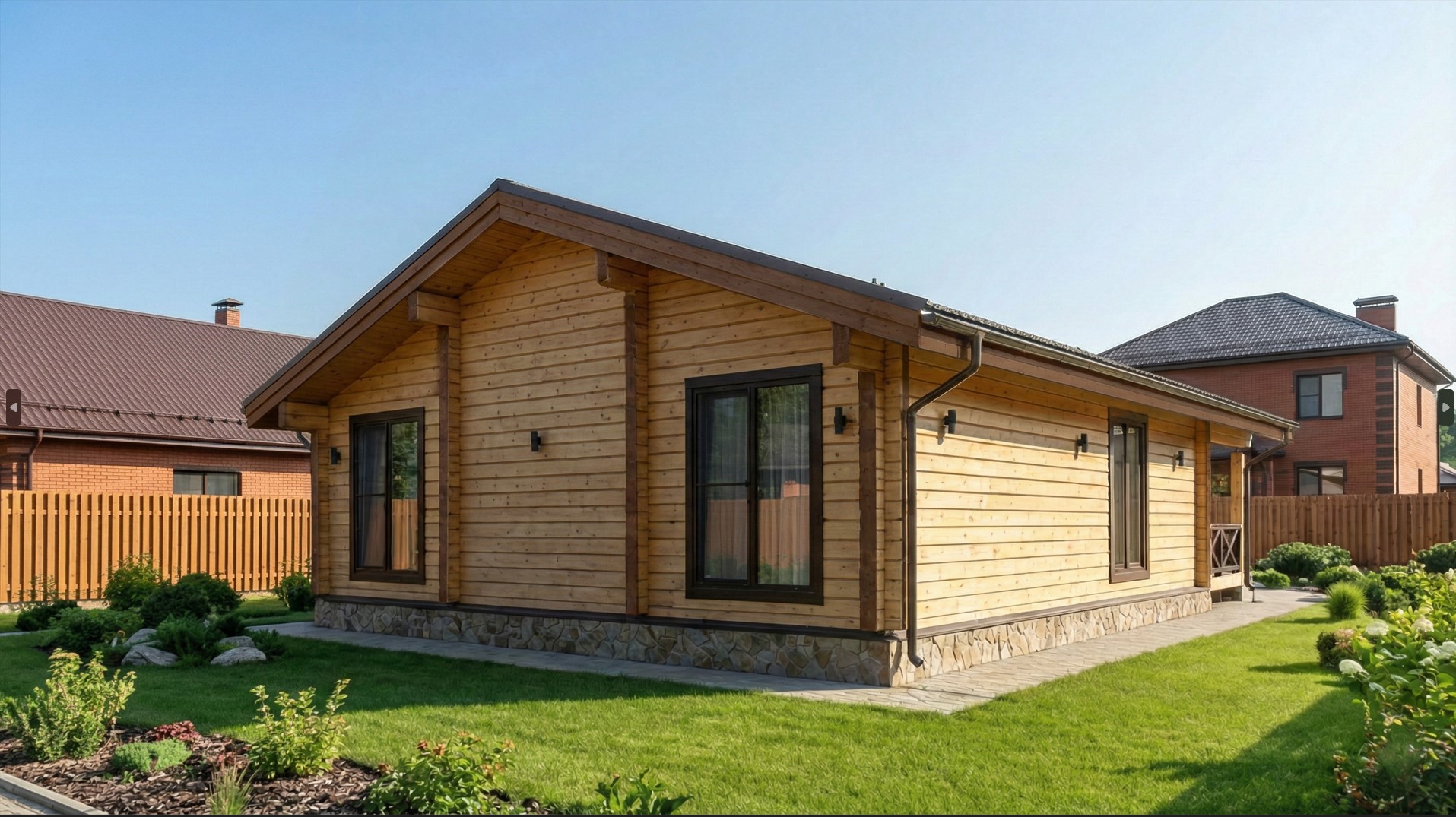 Уютный одноэтажный дом по проекту Лаймы — это продуманное решение для комфортной загородной жизни и полноценного отдыха. Проект сочетает современную архитектуру, выразительный фасад и функциональную планировку. Панорамное остекление, широкая терраса и двускатная кровля формируют уютный образ дома, который гармонично вписывается в природное окружение и отлично подходит как для дачи, так и для постоянного проживания.