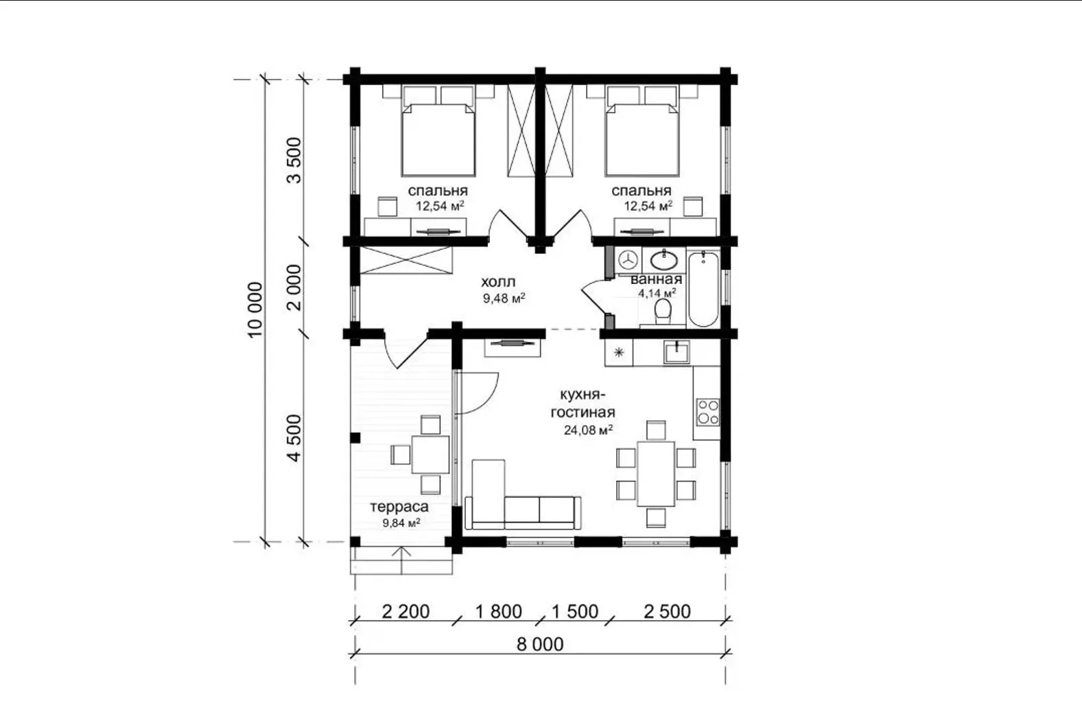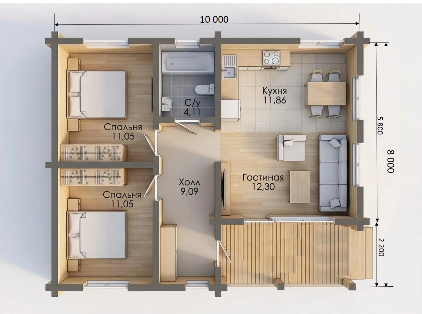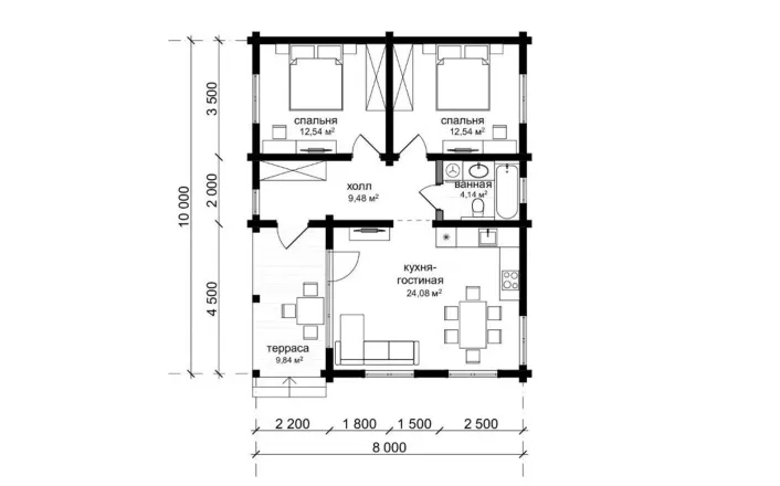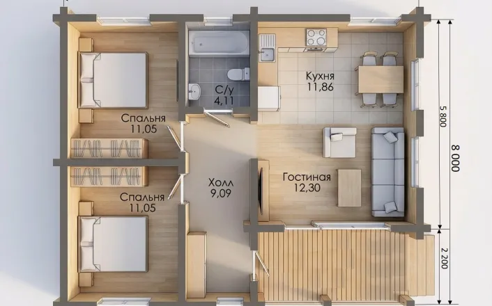 Комплектация "ХОЛОДНЫЙ КОНТУР" Сечение бруса 160х185 мм |