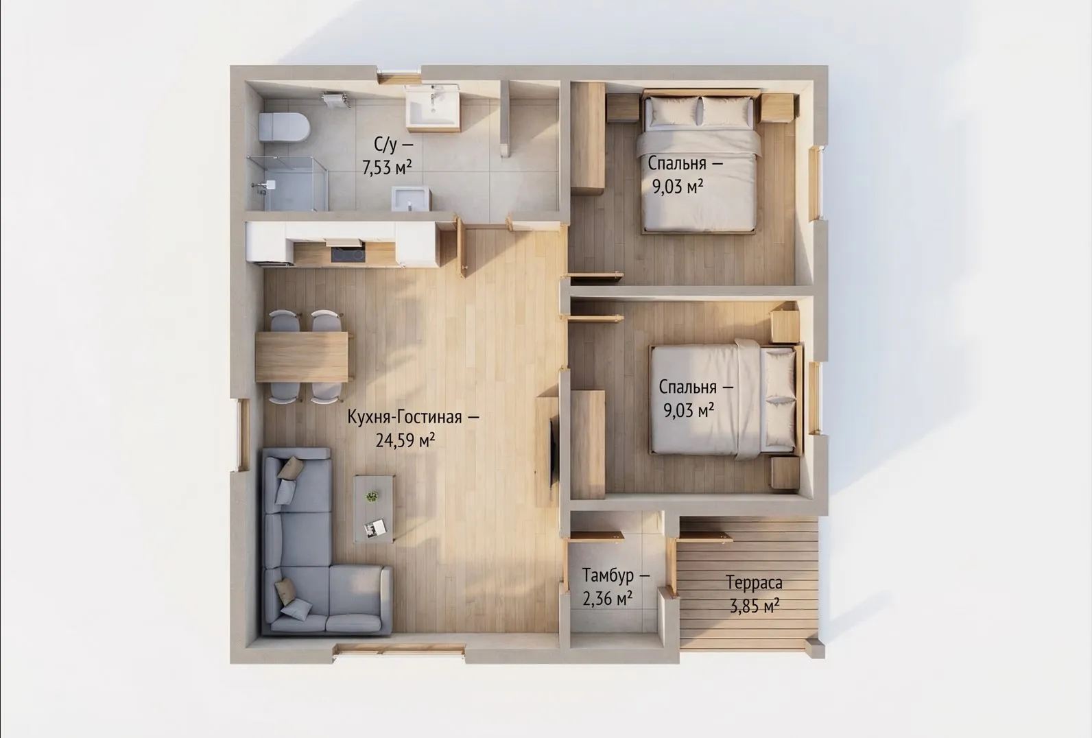 - Черновой пол (двойной слой фанеры 10мм, мокрые зоны – укладка ЦСП)