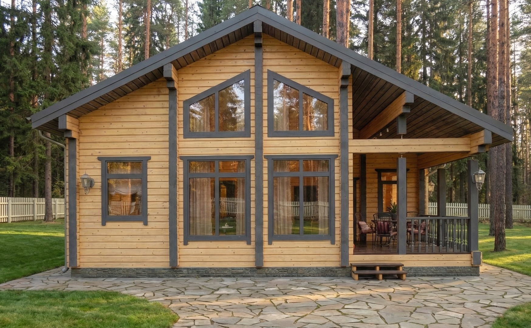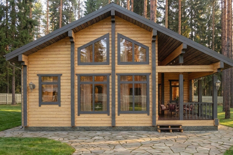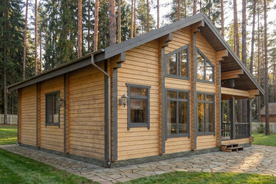 Дом из клееного бруса «Завидово» — это компактный и функциональный проект, идеально подходящий для комфортной загородной жизни или отдыха. Архитектура с выразительным фасадом и панорамным остеклением наполняет дом естественным светом, создавая ощущение простора и уюта. Натуральный брус обеспечивает экологичность, тепло и долговечность.