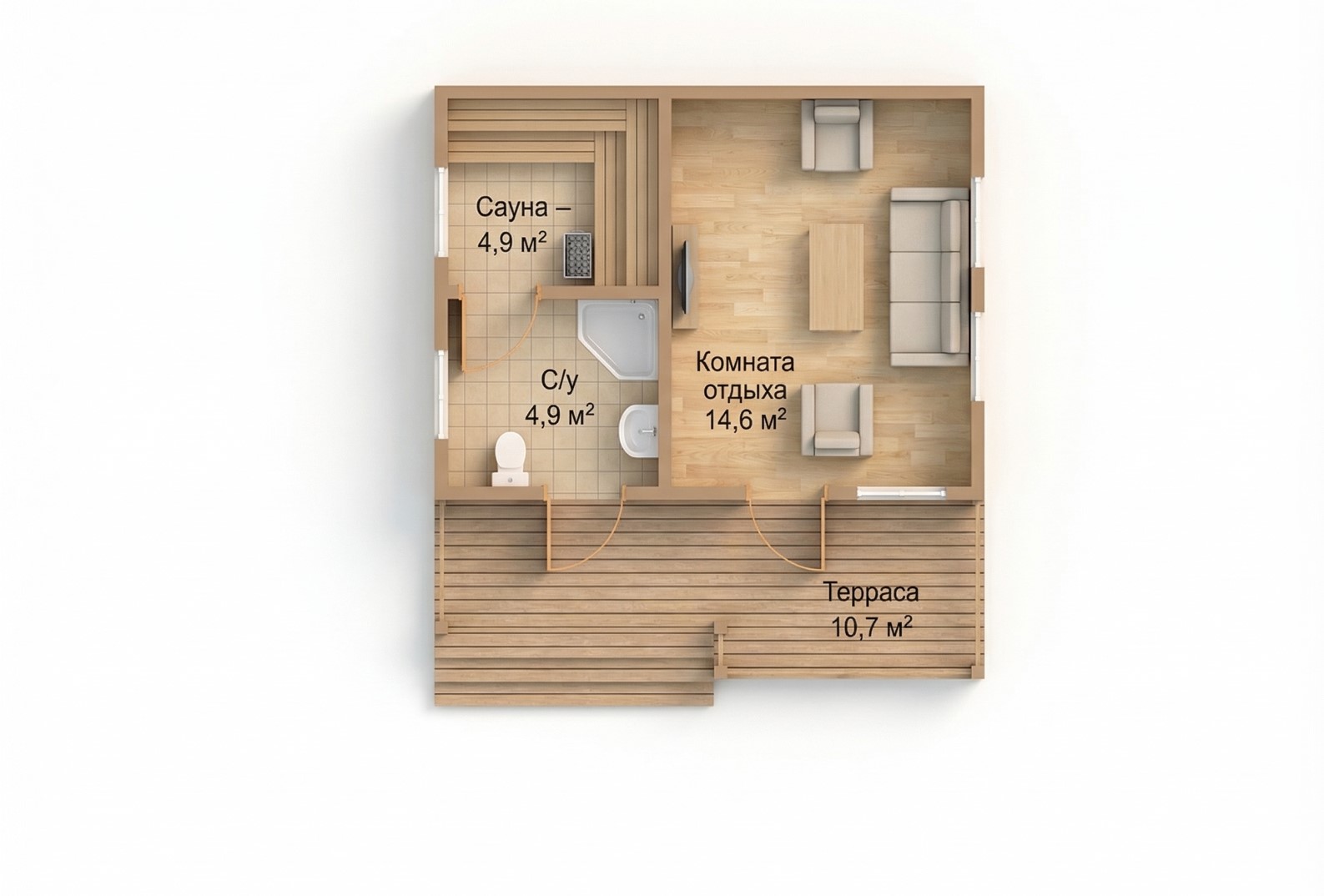 • Черновой пол (двойной слой фанеры 10мм, мокрые зоны – укладка ЦСП)