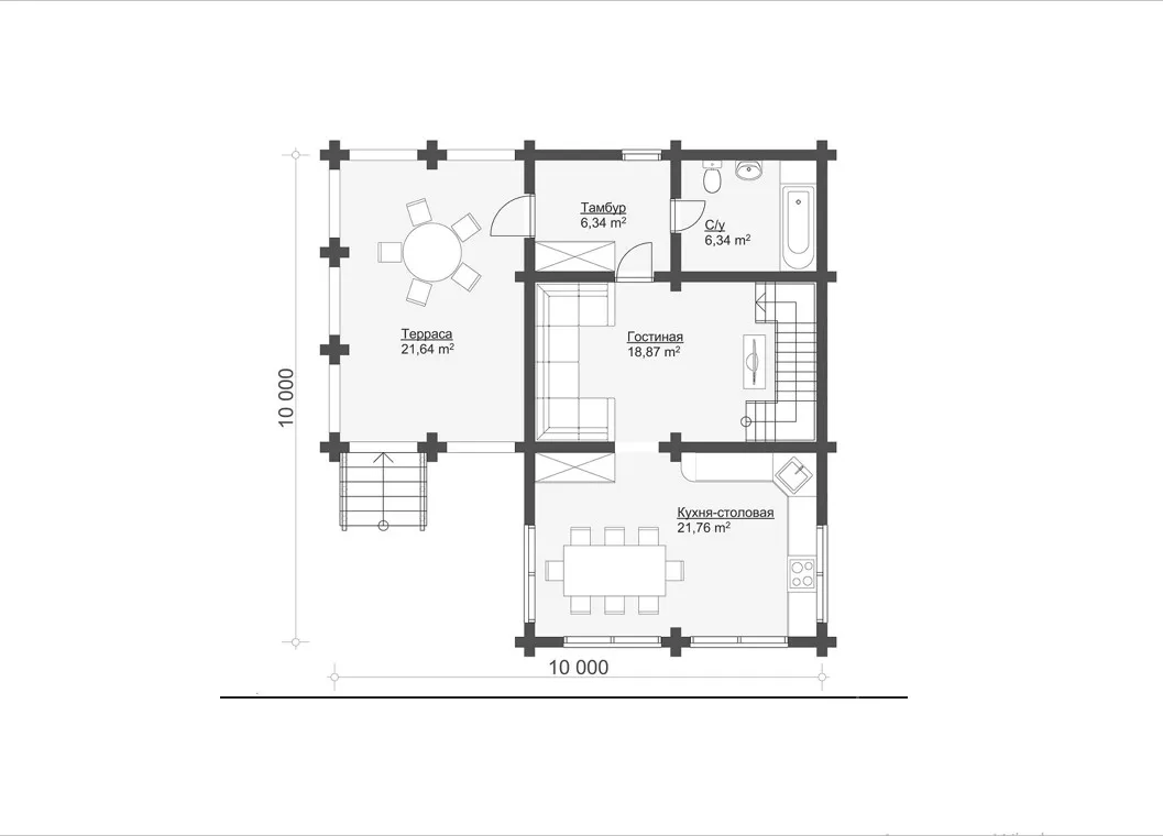 Комплектация "ТЕПЛЫЙ КОНТУР" Сечение бревна d=200 мм
