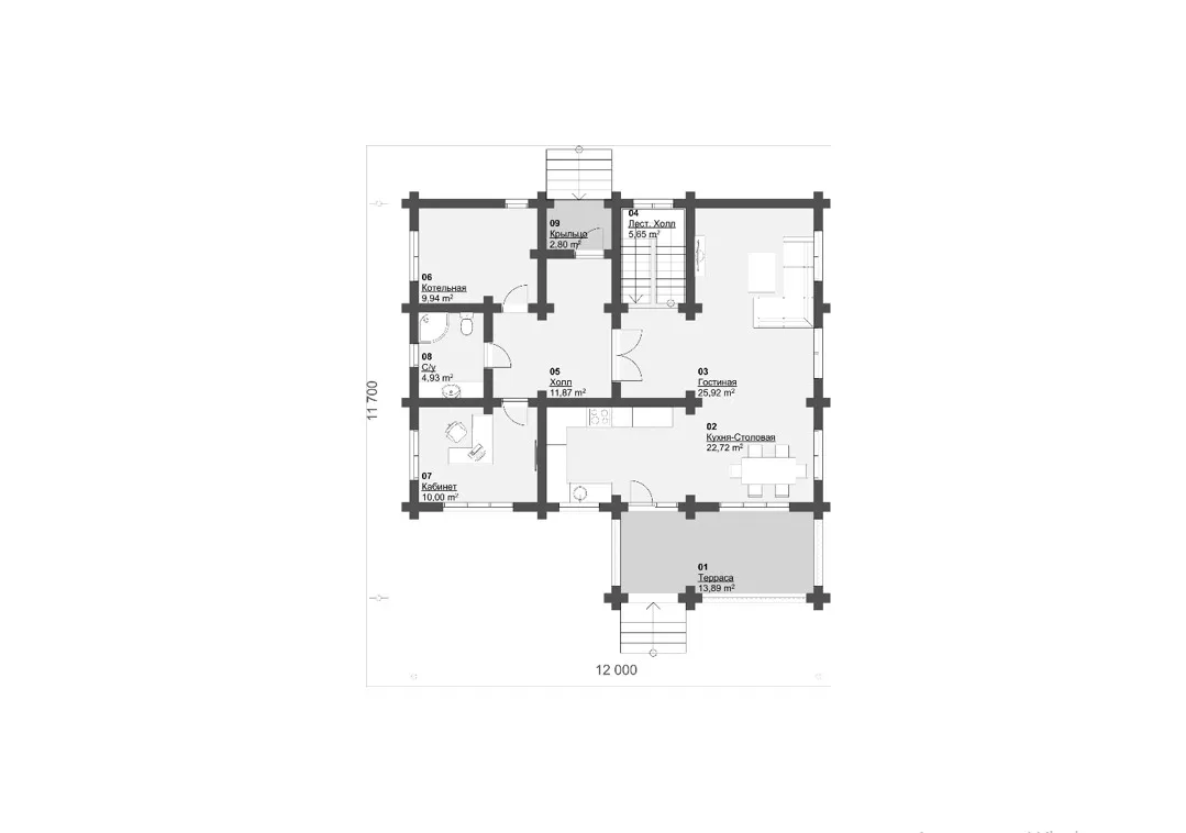 Комплектация "ХОЛОДНЫЙ КОНТУР" Сечение бревна d=200 мм