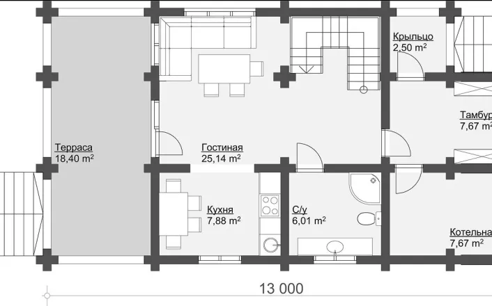 Комплектация "ХОЛОДНЫЙ КОНТУР" Сечение бревна d=200 мм