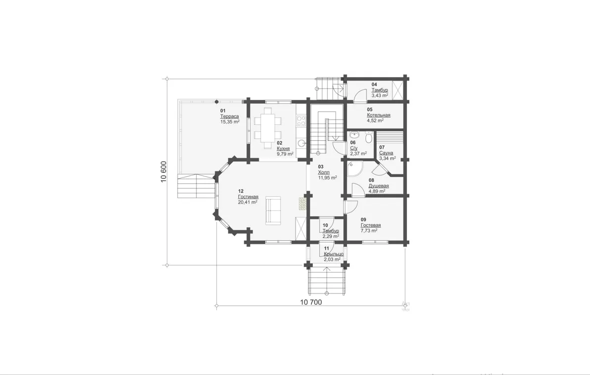 Комплектация "ХОЛОДНЫЙ КОНТУР" Сечение бревна d=200 мм